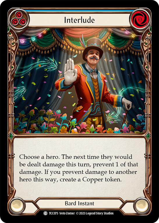 Choose a hero. The next time they would be dealt damage this turn, prevent 1 of that damage. If you prevent damage to another hero this way, create a Copper token.